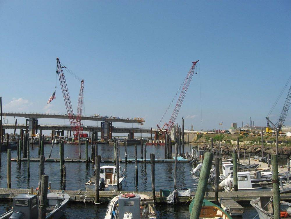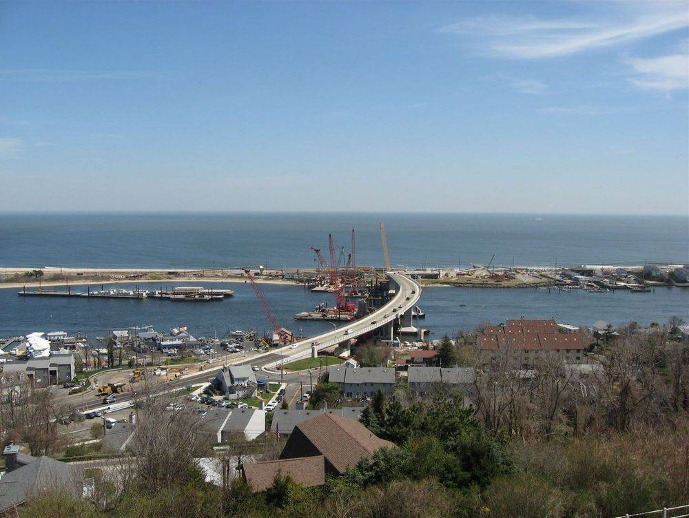 First half of new segmental concrete bridge over inlet to Shrewsbury River from Sandy Hook Bay, between Highlands and Sea Bright, New Jersey.